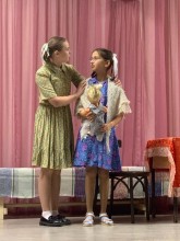 Сейчас в работе постановка по произведению А.С. Пушкина «Барышня- Крестьянка». Ребята старших классов пробуют себя в роли актеров, визажистов, костюмеров, звукорежиссеров.